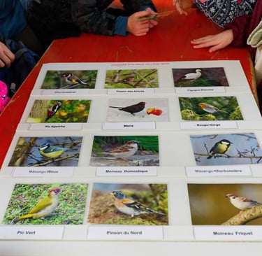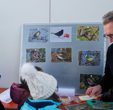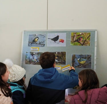 un atelier d’identification et de nourrissage des oiseaux de nos jardins.